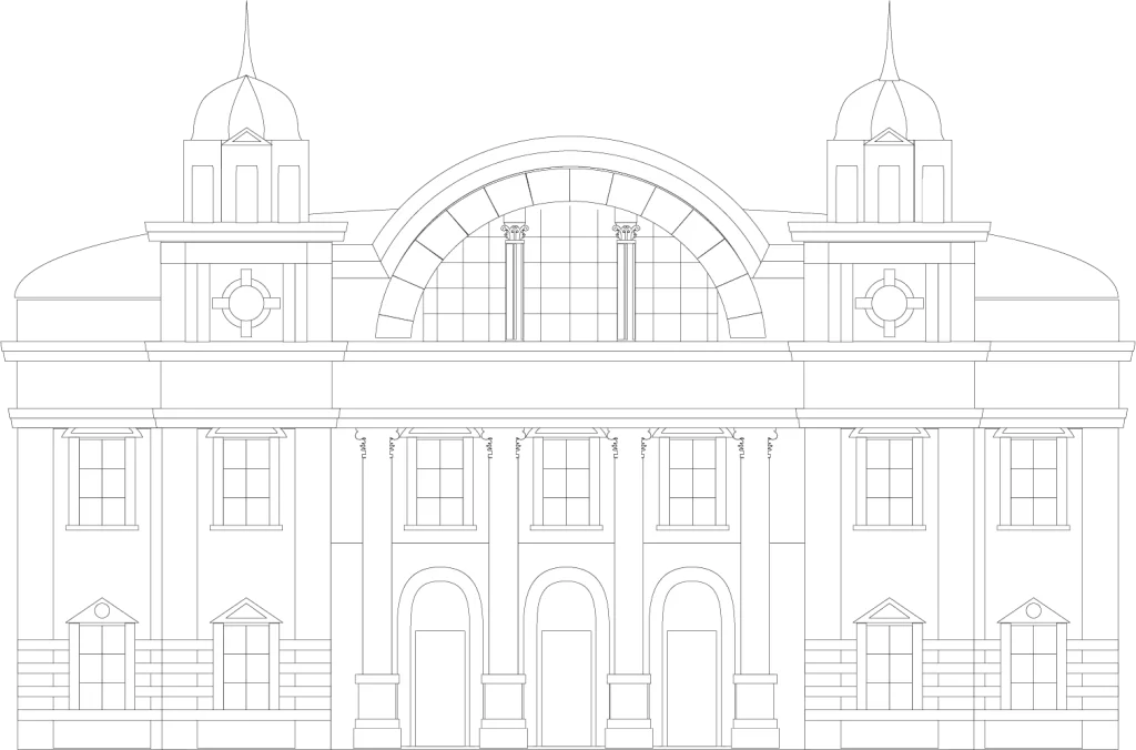 写真で「動」の魅力を伝える一方で、デザインの細部には「静」のこだわりを凝縮させました。 公会堂の細かな装飾や建築美をアイコン化し、さらにそれを繊細な「線画(イラスト)」として再構築しました。